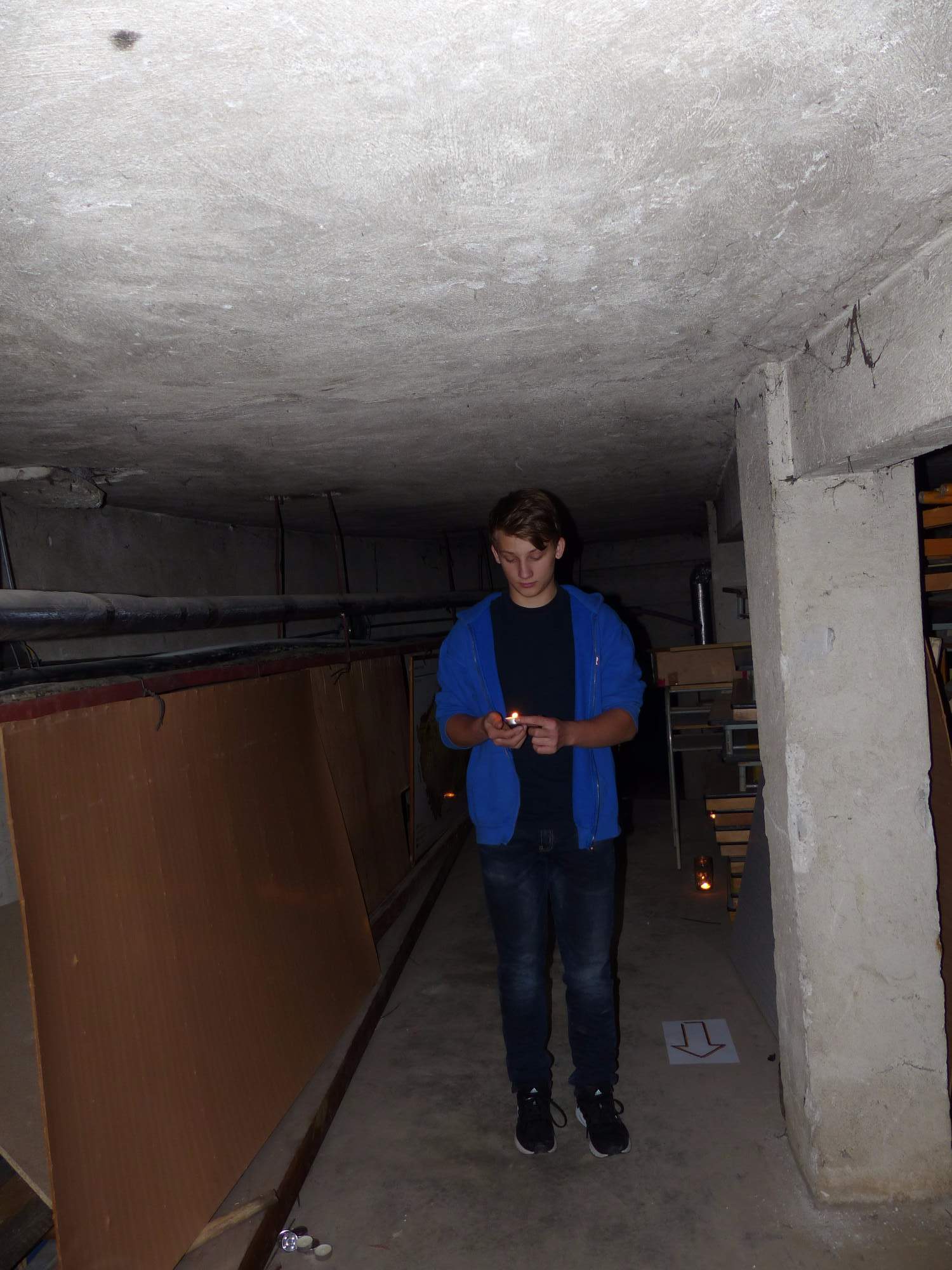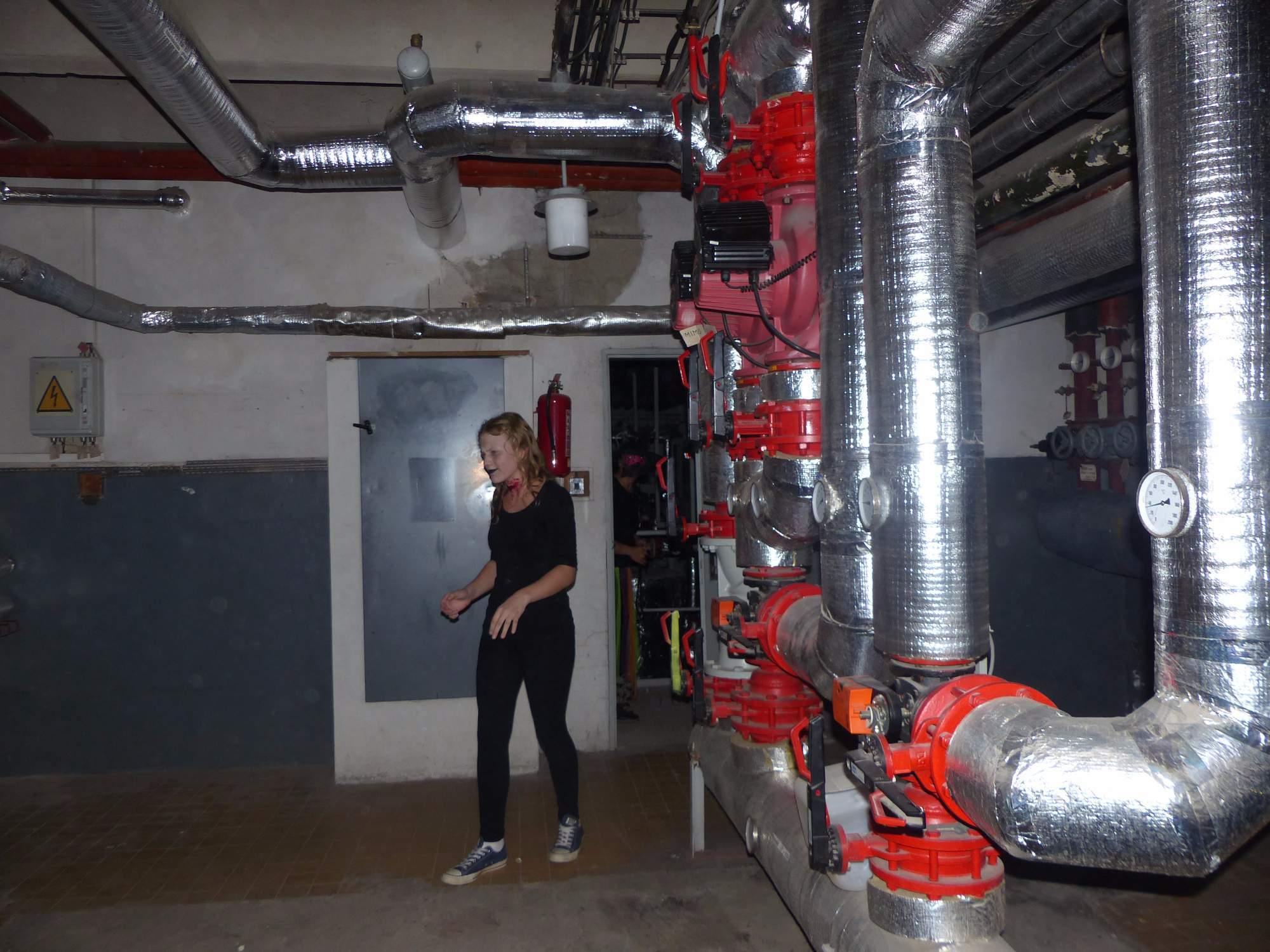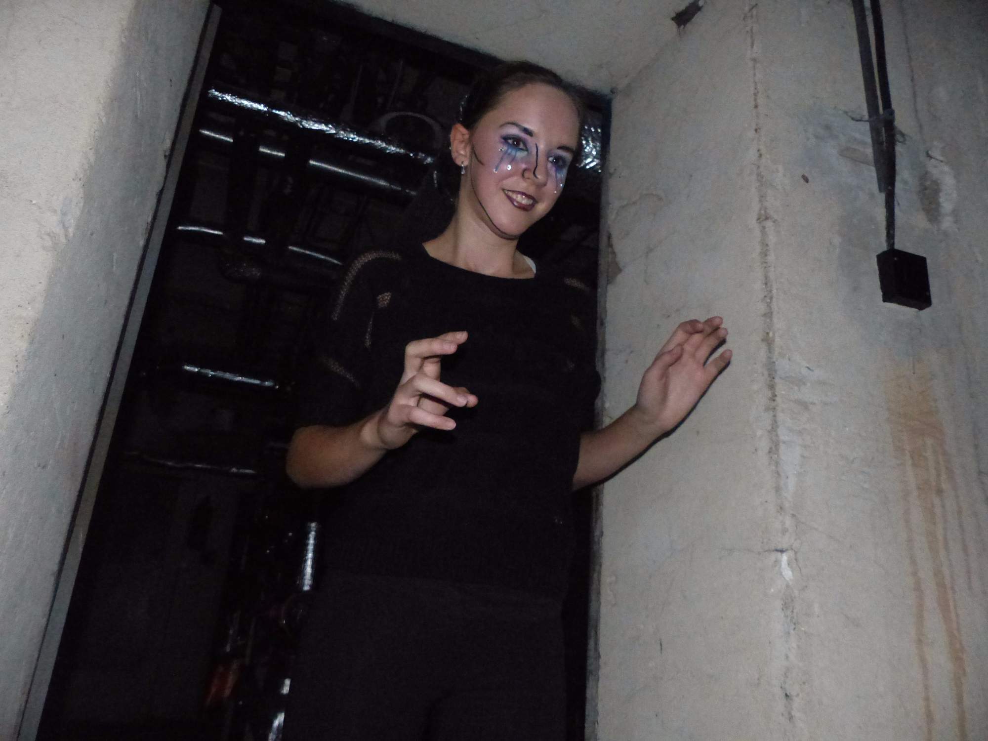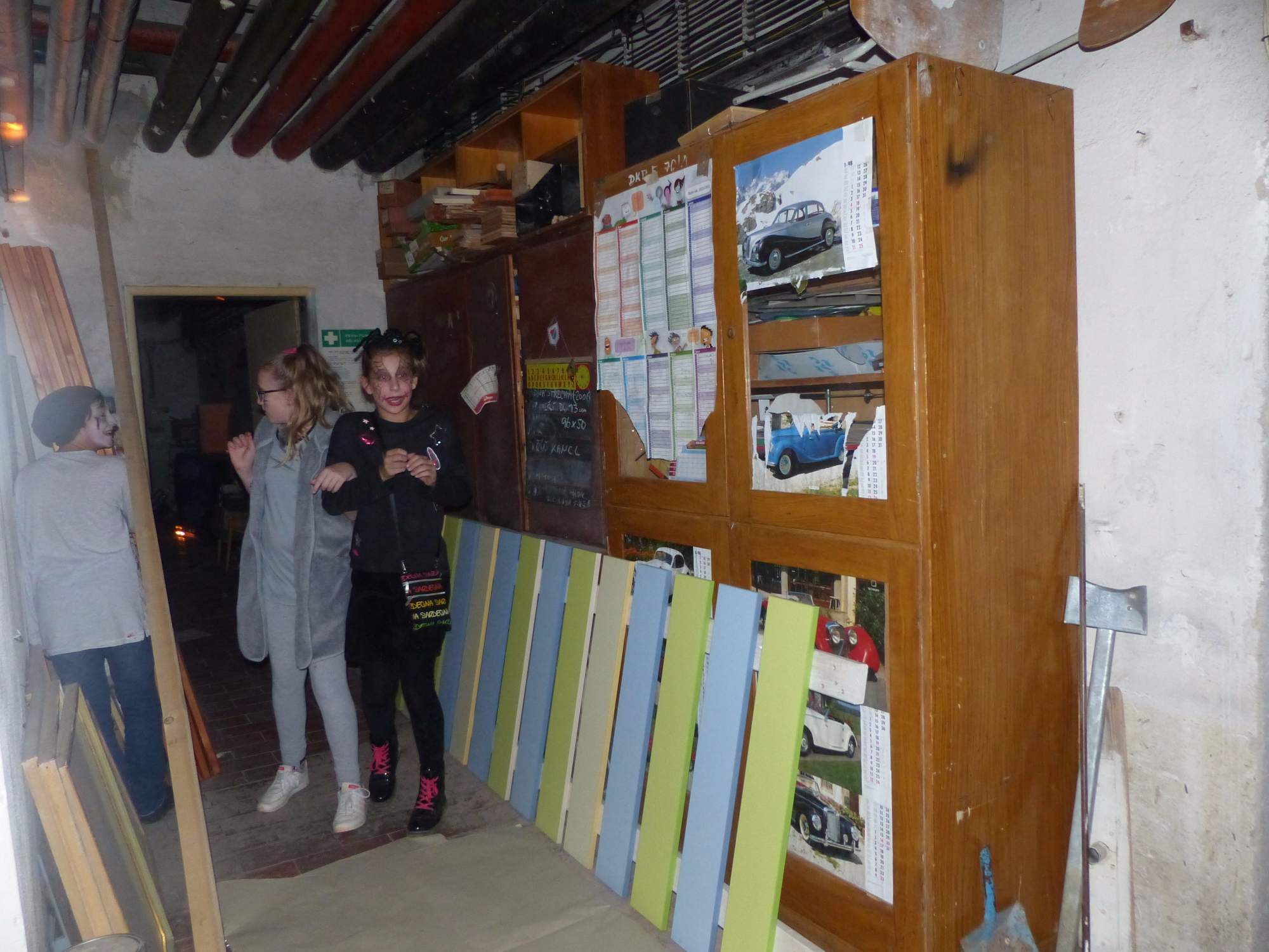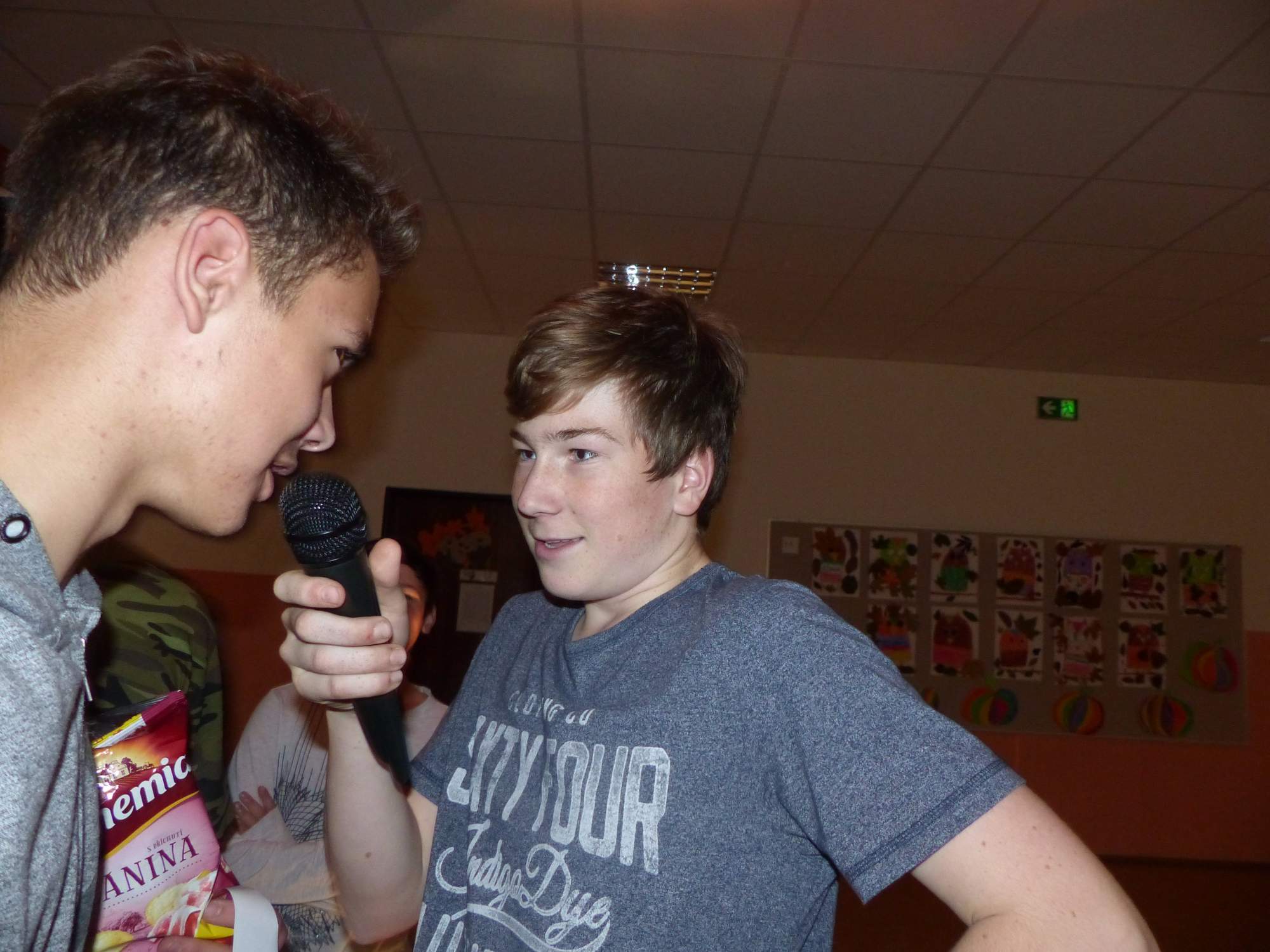 Všichni účastníci do puntíku splnili jedinou podmínku – museli přijít v maskách, takže už u vchodu jsme některé žáky nepoznávali. Po úvodním přivítání, kterého se chopila Gabča Vinklerová, propukla módní přehlídka moderovaná Soňou Krčkovou, v roli modelek upírky, strašilky a příšery ze 6.B. Kde, jak a proč se začal slavit Halloween otestoval kvíz, který připravili Dan Šácha a Ondra Špendlík. Pak jsme čekali na překvapení – ovšem nečekali jsme nehybně, neboť celá aula se roztančila ve stylu Just Dance a snažila se vlnit stejně tak, jako Róza Slováčková a Anička Novotná. A najednou – z ničeho nic se mezi námi ocitla zombie: mrtvolný pohled, rozdrásané tričko, nebezpečně pomalé pohyby… A už po nás šla – tedy šel. To bylo ono slibované překvapení, multiumělec Charles. Mohli jsme pak obdivovat až strašnou hru jeho svalů, které předvedl při tanci. Musíme uznat, že žáci, které si vybral ke spoluúčinkování, mu mnohdy směle konkurovali! A byl nejvyšší čas vydat se na stezku odvahy. Za pomoci pana školníka deváťáci pod vedením Davida Váni a asistence Dominika Kostky připravili hrůzostrašné nástrahy při průchodu školním sklepem. Nebudeme mnoho prozrazovat, ale svou roli sehrála i tarantule, pomůcky z přírodopisného kabinetu (kostlivec, „Anča“) a jiné děsivosti (v neposlední řadě sami deváťáci…). Na konci stezky byli odvážlivci odměněni perníčkem (samozřejmě halloweenským, třeba ve tvaru netopýra, napekla paní učitelka Hromadová s osmáky). Důkazem toho, kolik lidí stezku zvládlo, je podpisová listina – samozřejmě se každý podepsal přiloženou krví… A pak se pilo (Nápoj věčného mládí, Krev jednorožce, Elixír lásky), tančilo, strašilo, kecalo… No prostě party jak má být.