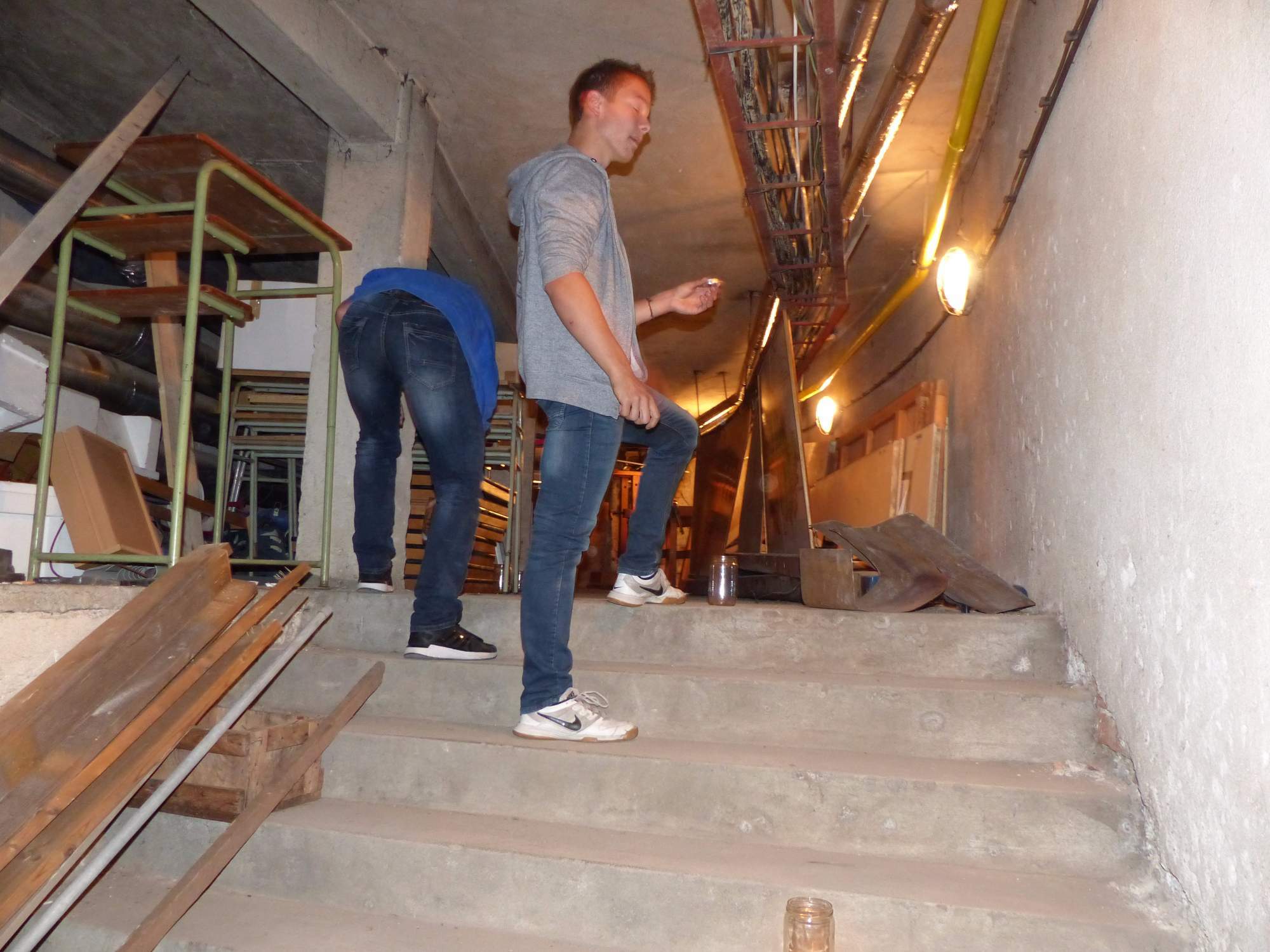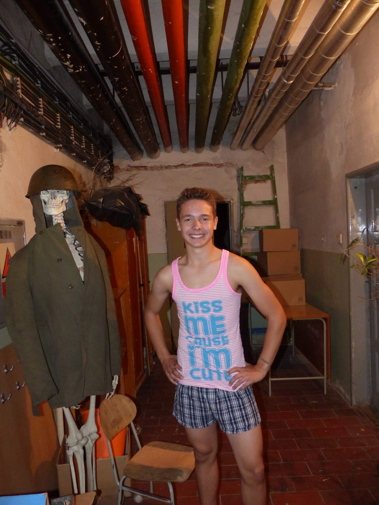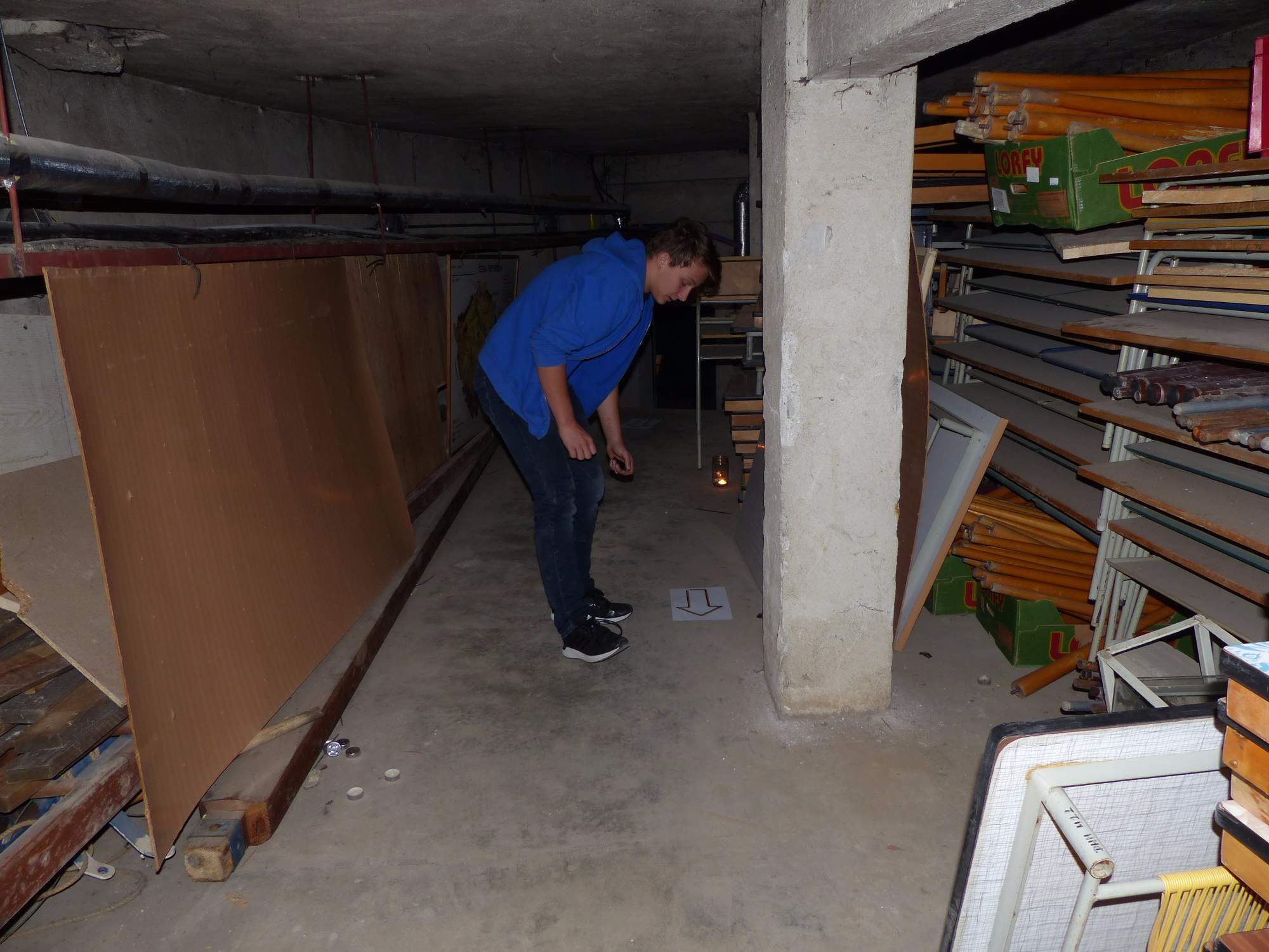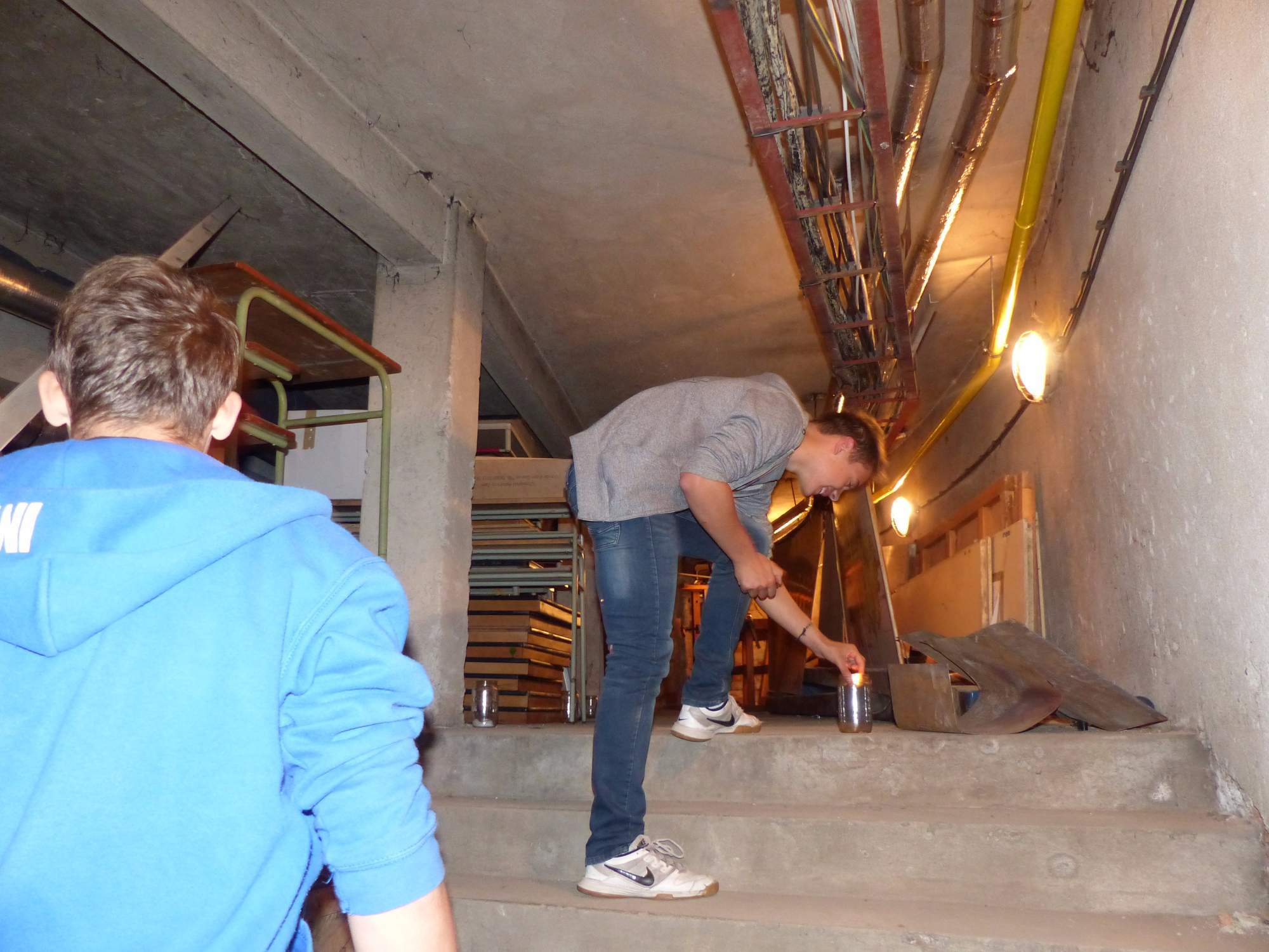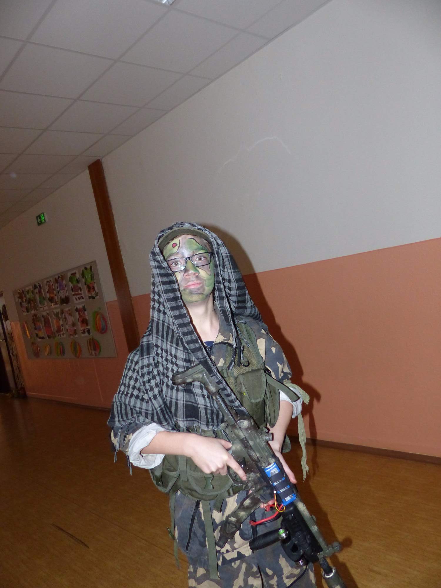 Všichni účastníci do puntíku splnili jedinou podmínku – museli přijít v maskách, takže už u vchodu jsme některé žáky nepoznávali. Po úvodním přivítání, kterého se chopila Gabča Vinklerová, propukla módní přehlídka moderovaná Soňou Krčkovou, v roli modelek upírky, strašilky a příšery ze 6.B. Kde, jak a proč se začal slavit Halloween otestoval kvíz, který připravili Dan Šácha a Ondra Špendlík. Pak jsme čekali na překvapení – ovšem nečekali jsme nehybně, neboť celá aula se roztančila ve stylu Just Dance a snažila se vlnit stejně tak, jako Róza Slováčková a Anička Novotná. A najednou – z ničeho nic se mezi námi ocitla zombie: mrtvolný pohled, rozdrásané tričko, nebezpečně pomalé pohyby… A už po nás šla – tedy šel. To bylo ono slibované překvapení, multiumělec Charles. Mohli jsme pak obdivovat až strašnou hru jeho svalů, které předvedl při tanci. Musíme uznat, že žáci, které si vybral ke spoluúčinkování, mu mnohdy směle konkurovali! A byl nejvyšší čas vydat se na stezku odvahy. Za pomoci pana školníka deváťáci pod vedením Davida Váni a asistence Dominika Kostky připravili hrůzostrašné nástrahy při průchodu školním sklepem. Nebudeme mnoho prozrazovat, ale svou roli sehrála i tarantule, pomůcky z přírodopisného kabinetu (kostlivec, „Anča“) a jiné děsivosti (v neposlední řadě sami deváťáci…). Na konci stezky byli odvážlivci odměněni perníčkem (samozřejmě halloweenským, třeba ve tvaru netopýra, napekla paní učitelka Hromadová s osmáky). Důkazem toho, kolik lidí stezku zvládlo, je podpisová listina – samozřejmě se každý podepsal přiloženou krví… A pak se pilo (Nápoj věčného mládí, Krev jednorožce, Elixír lásky), tančilo, strašilo, kecalo… No prostě party jak má být.