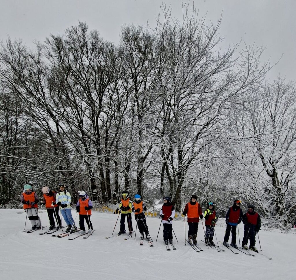 V lednu vyjeli na svah žáci prvního stupně, kterých bylo celkem 50. Pro některé z nás to bylo úplně první setkání s lyžemi. Díky trpělivému vedení našich učitelů, kteří nás po celý kurz doprovázeli, jsme se postupně učili zatáčet, brzdit i bezpečně zastavit. Každý den jsme dělali velké pokroky a bylo radost sledovat, jak se z prvních opatrných jízd stávaly stále jistější oblouky. Na konci kurzu už jsme sjížděli svah s úsměvem a velkou radostí z toho, co jsme se dokázali naučit.